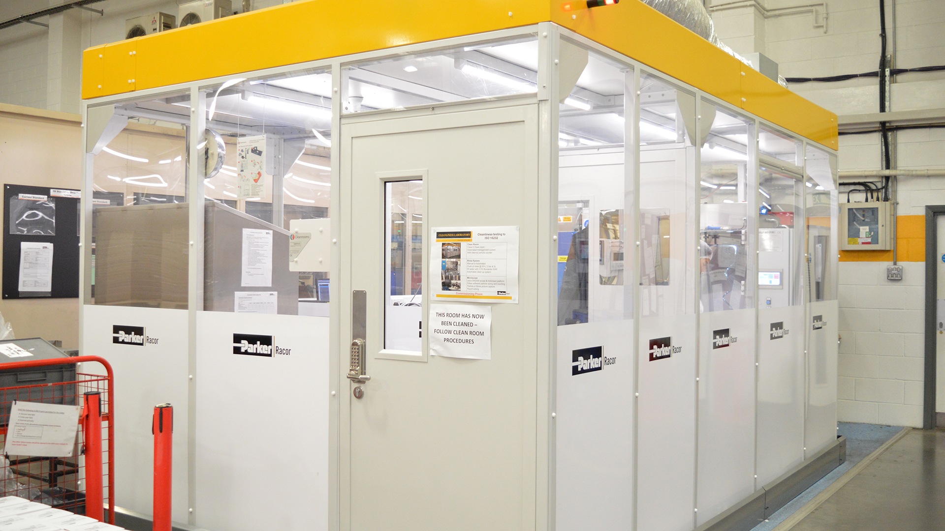 The production cleanroom was customised to feature Parker’s distinctive gold bar design as a visual element, creating a focal point in the production facility.