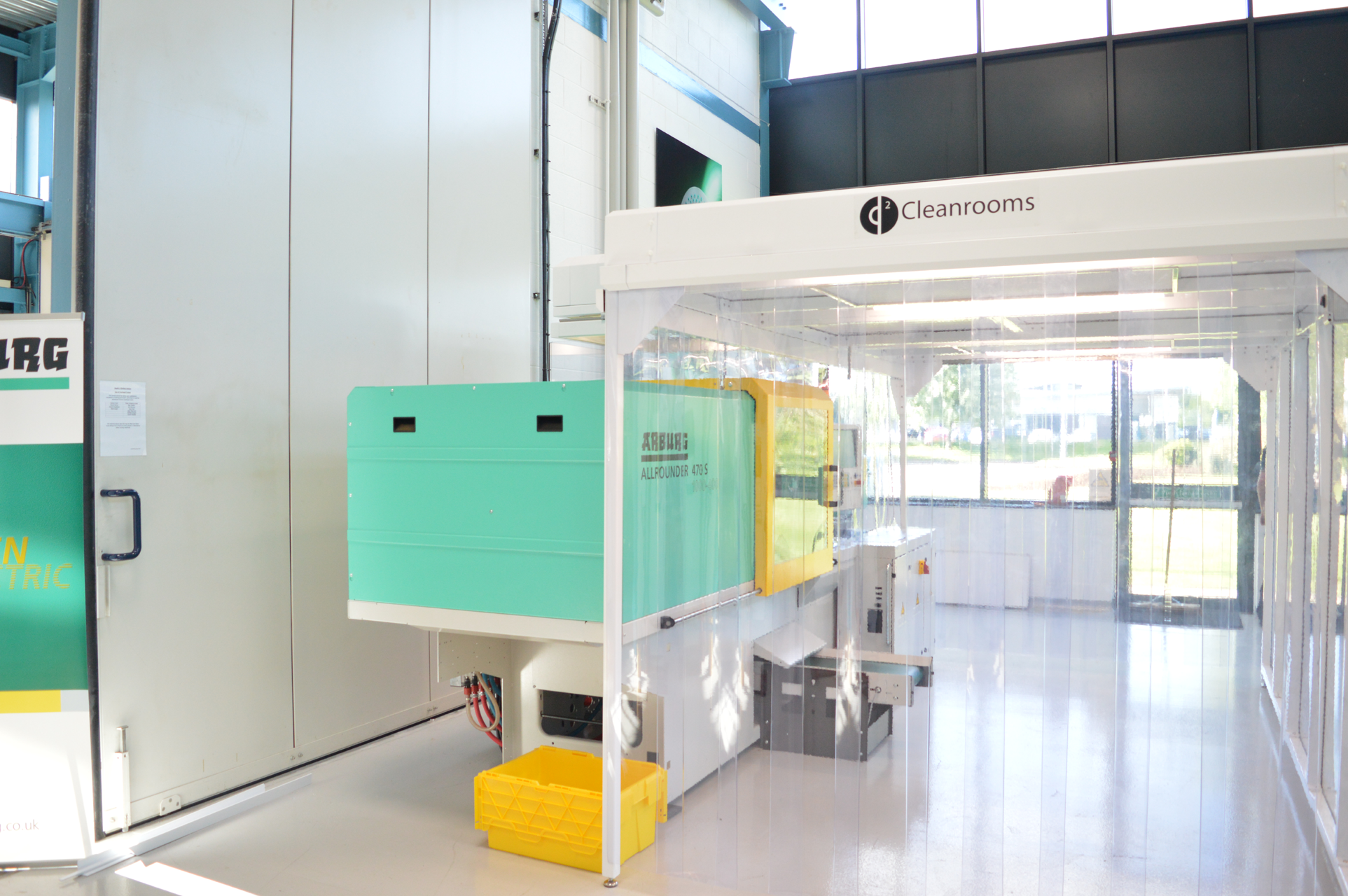 The cleanroom featured one of our HEPA-lite™ canopies, which we developed specifically for the plastics market. The canopy features a HEPA filter to provide clean, filtered air at the tool-face of an injection moulding machine. It can slide back on actuators to provide overhead access to tooling. The day featured showcases and seminars from Arburg and their other technology partners.