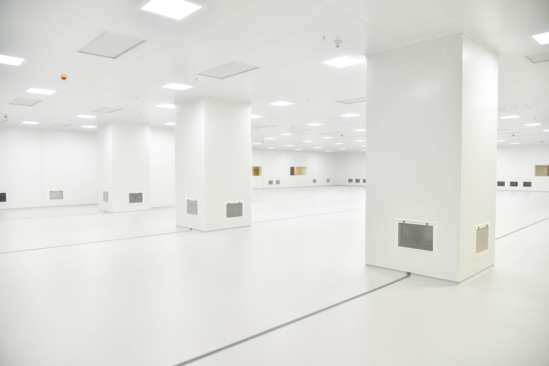 With an overall footprint of 951m², the install included a change area and cleaners store. The main cleanroom uses 60 individual fan filter units to control airborne particulates in line with ISO 14644:2015 Class 8; temperature and humidity are maintained at 21°C ± 2°C and 35% – 65% RH to ensure stable environmental conditions, with an ECO system that continually logs all these data parameters.