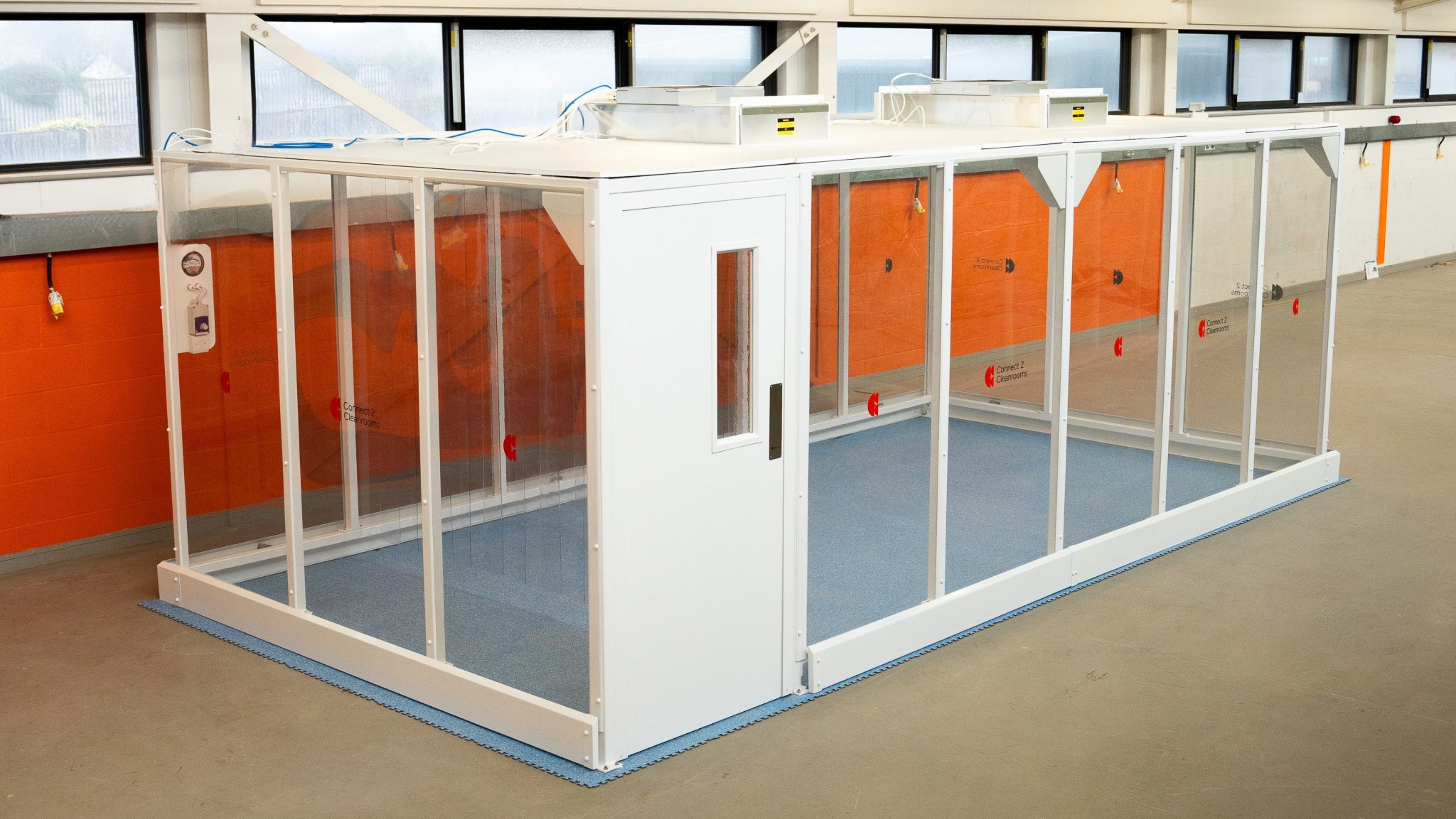 The cleanroom was chosen from Connect 2 Cleanrooms’ predesigned range, including a 1m x 3m integrated change area and a 5m x 3m internal working space.