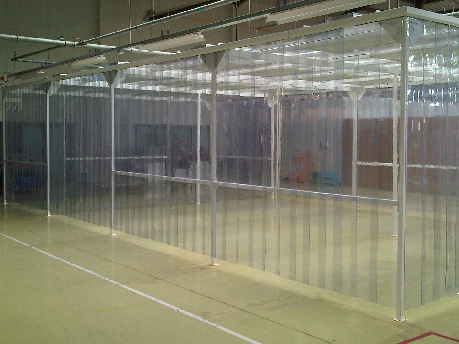 We designed and built a softwall cleanroom with an internal lobby area. The main area and lobby area were separated by a softwall divide and the different zones were reinforced by colour coded jigsaw flooring.