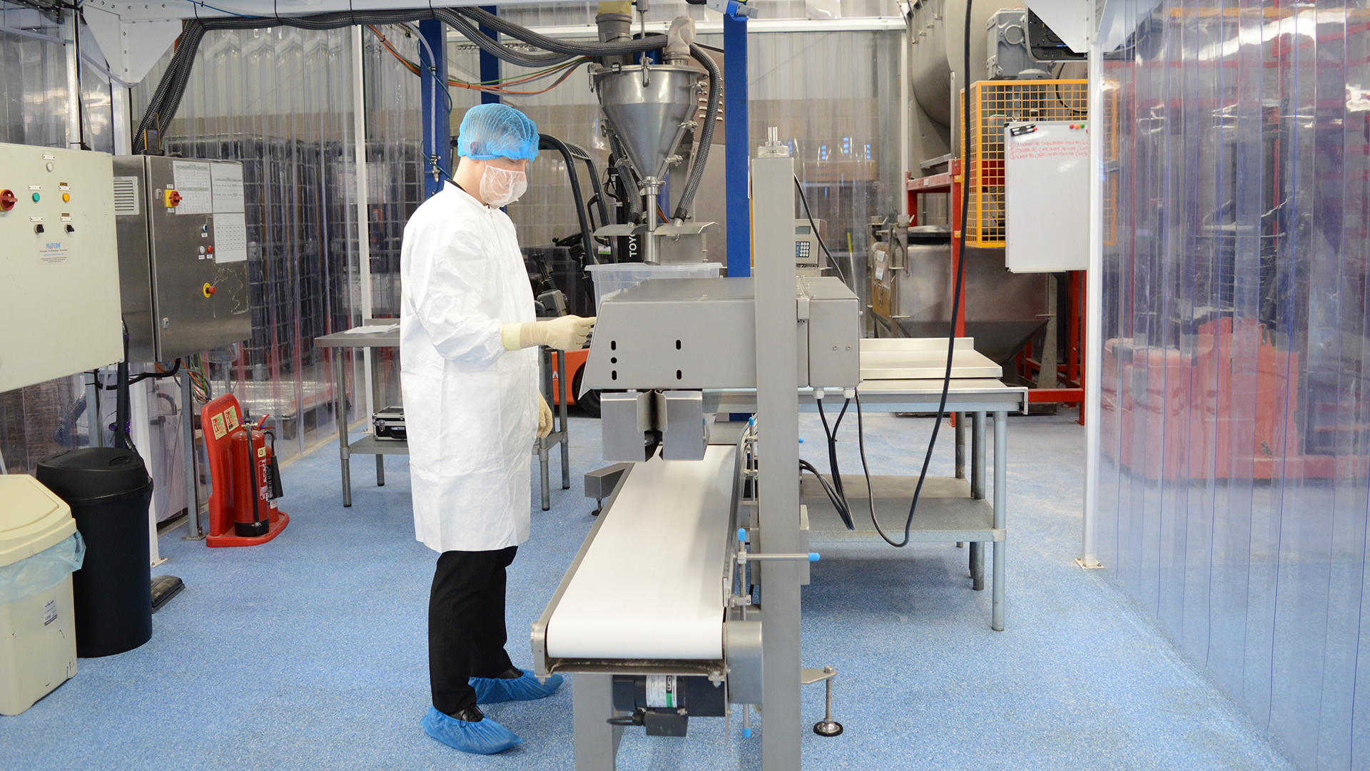 The protein blend area is built with an internal height of 5.5m to accommodate the mixing vessel height. HEPA filtration supplies clean and processed air over the critical points of production.