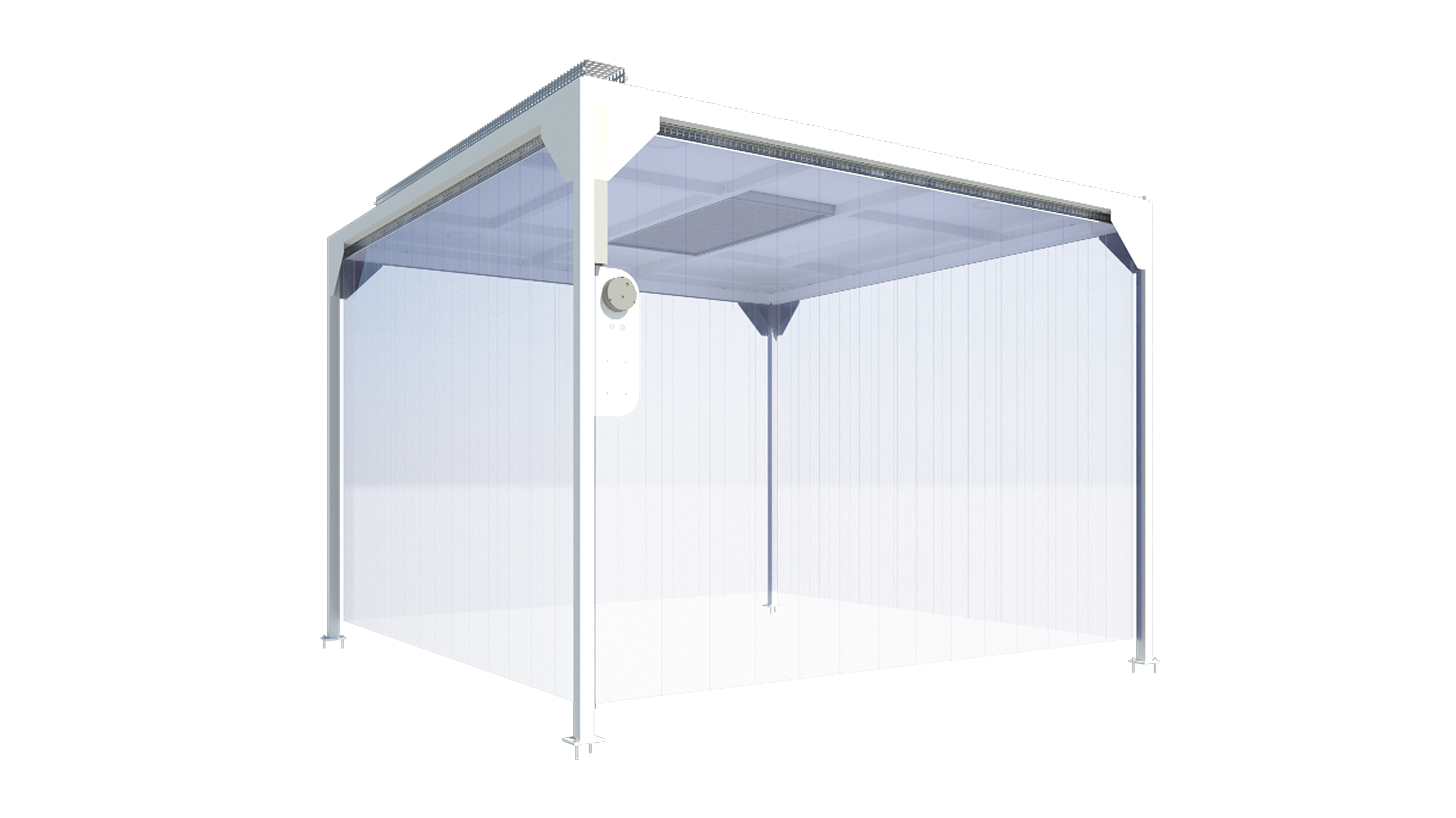 Our predesigned softwall cleanrooms are made using robust steel framing with hygienic coating, and PVC softwall curtains for external walls.